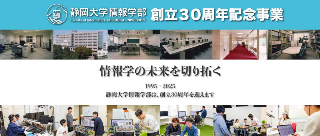 静岡大学情報学部は、日本の国立大学で初めて「情報」を冠した学部として1995年に創設され、2025年で30周年を迎えます。文工融合の理念のもと、情報技術と人文社会の視点を結びつけ、地域や社会で活躍する人材を育成してきました。